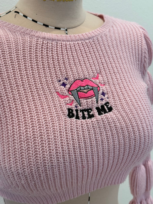 Bite me Crop Top Embroidered Knit Sweater Kawaii Goth